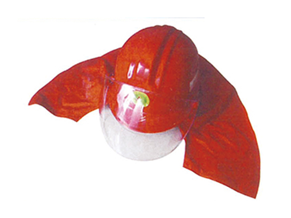 撲火頭盔采用高強(qiáng)度塑料壓模而成,質(zhì)地堅韌,強(qiáng)度高,抗沖擊,盔殼沖擊吸收性能大于500kg;表面光潔,色澤(桔黃)醒目;面罩透光率好,適光率≥90%,視角大,視野開闊清晰,能使隊員觀察到周圍的情況;撲火頭盔下部有披肩,可與撲火服連成一體,對頭部和肩部的整體保護(hù)更好;盔體兩邊設(shè)計6個矩形散熱窗,并方便隊員聆聽周圍聲音。盔體中間有加強(qiáng)股,外置面罩,頭盔面罩采用有機(jī)玻璃,耐高溫,厚度不小于3mm,面罩面積大,有效面積大、隔熱效果好。